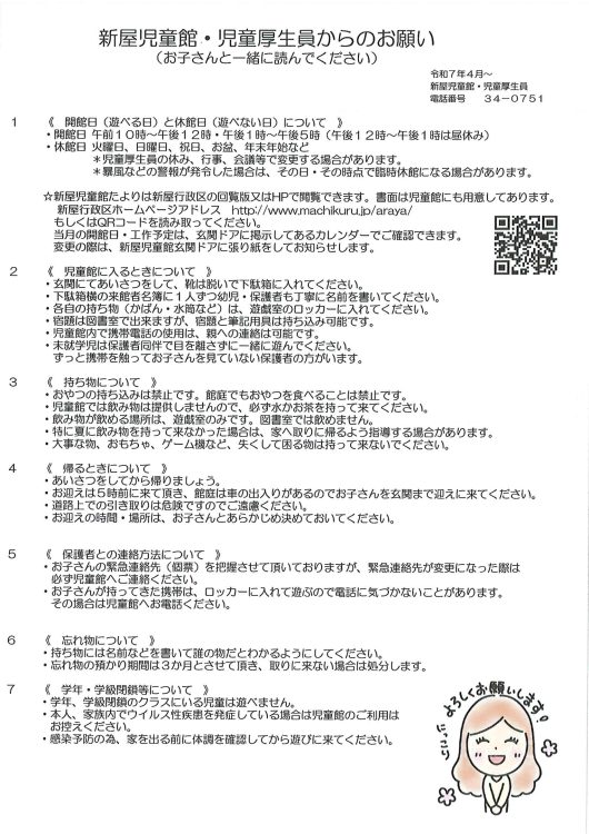 7.その他利用時の注意事項については、児童厚生員の指示に従ってください。