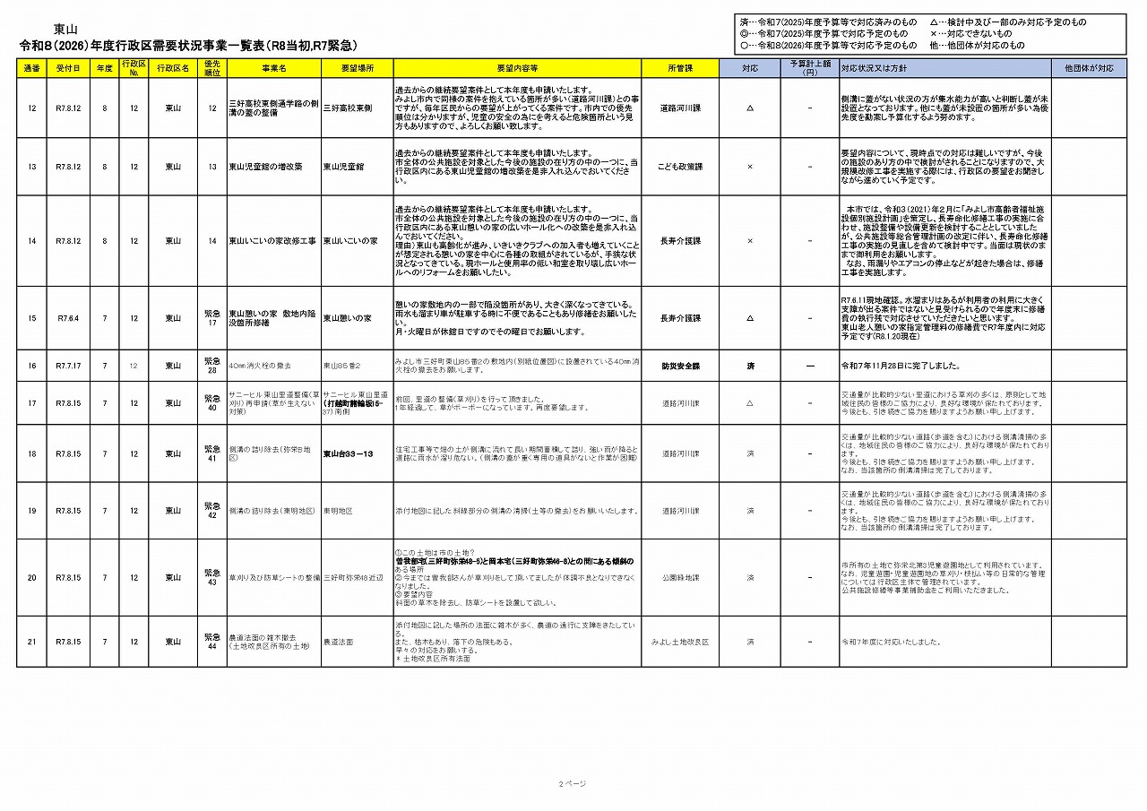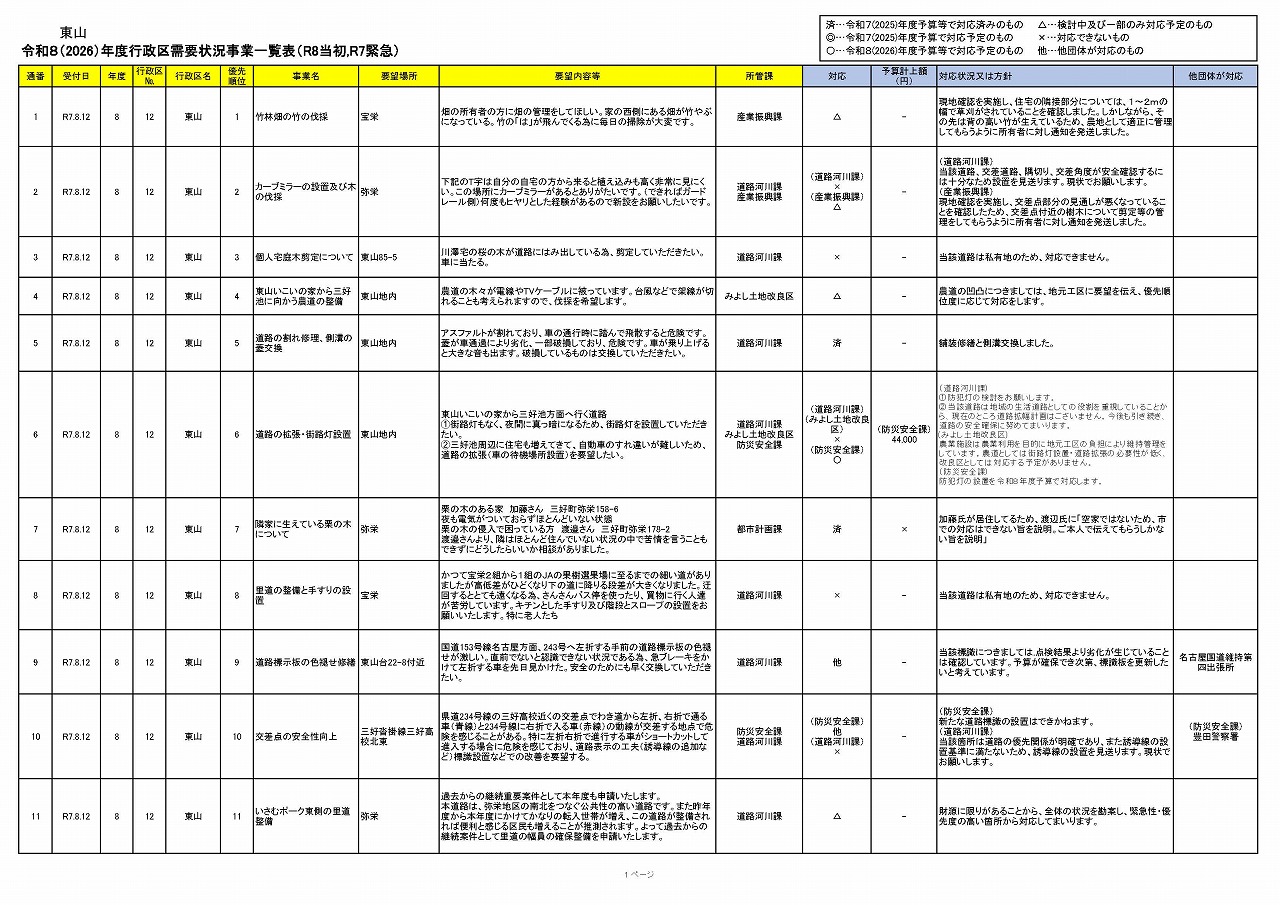 【東山】令和8(2026)年度行政区需要状況事業一覧表(R8当初分,R7緊急)