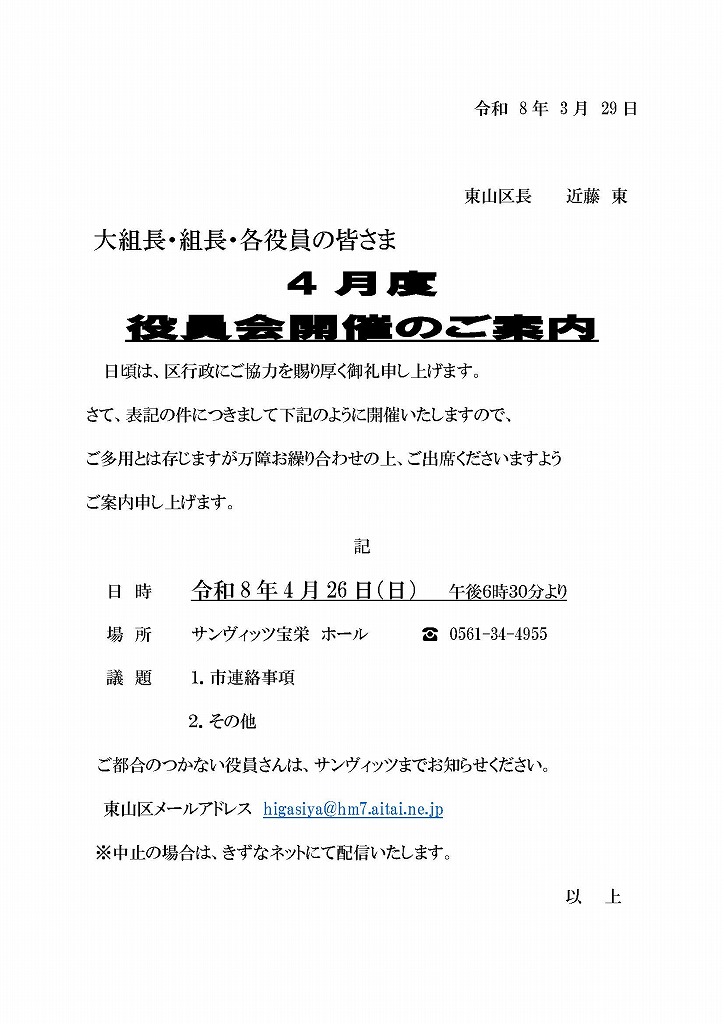 == 役員会開催のご案内 ==