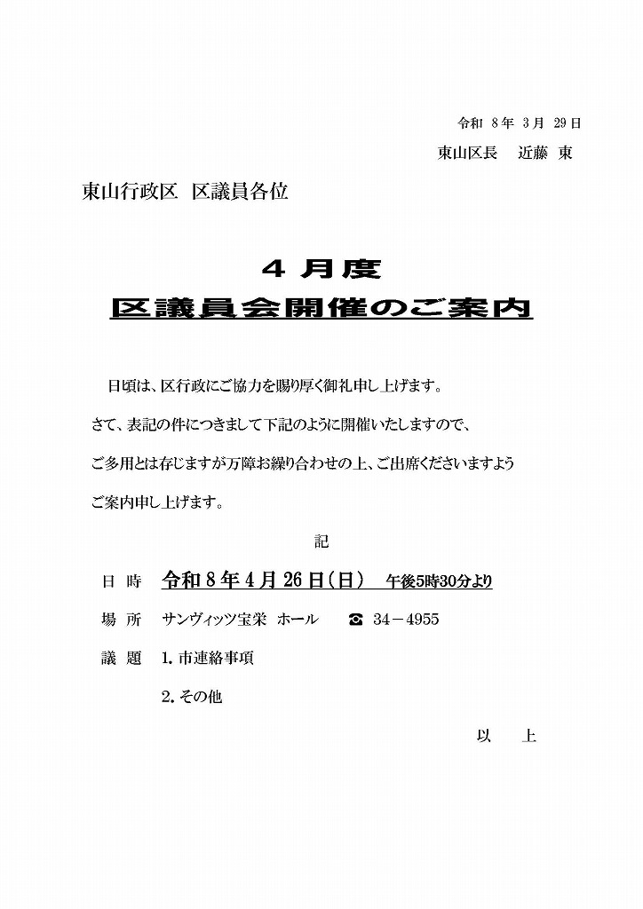 == 区議員会開催のご案内 ==