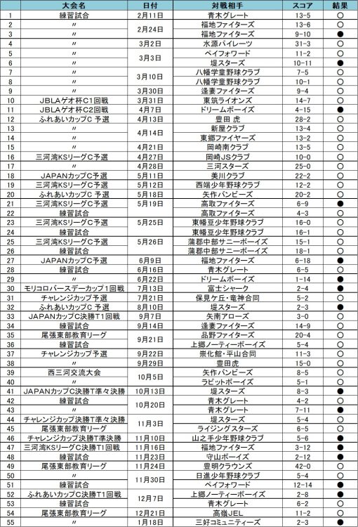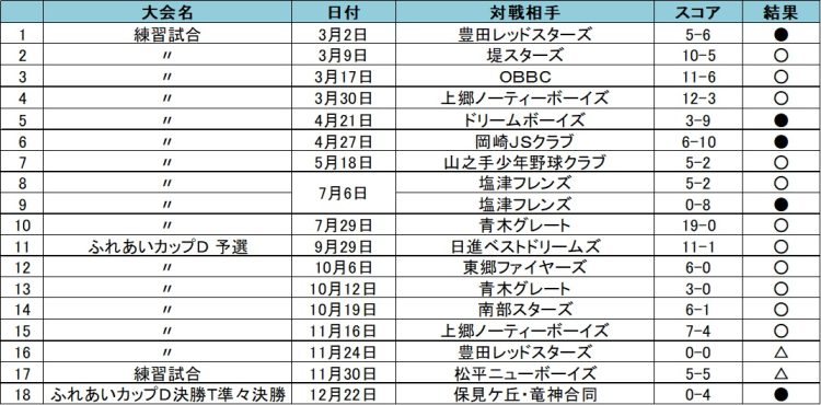 練習試合 11試合 6勝 4敗1分け 勝率0.545