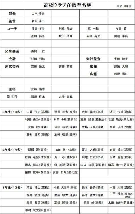 ★★令和8年度在籍者名簿★★ (2026.4.11)