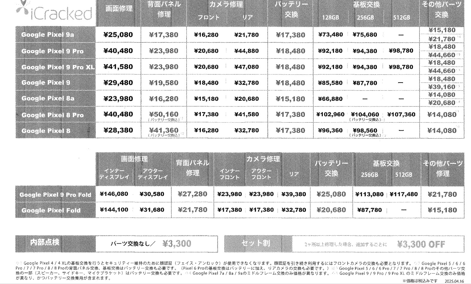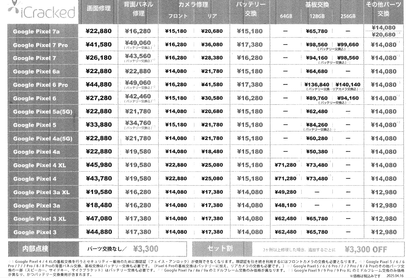 ・画面修理 ・背面パネル修理 ・カメラ修理 ・バッテリー交換 ・基盤交換 など、修理いたします。