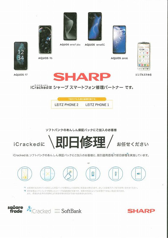 ・画面修理 ・背面パネル修理 ・カメラ修理 ・バッテリー交換 ・基盤交換 など、修理いたします。