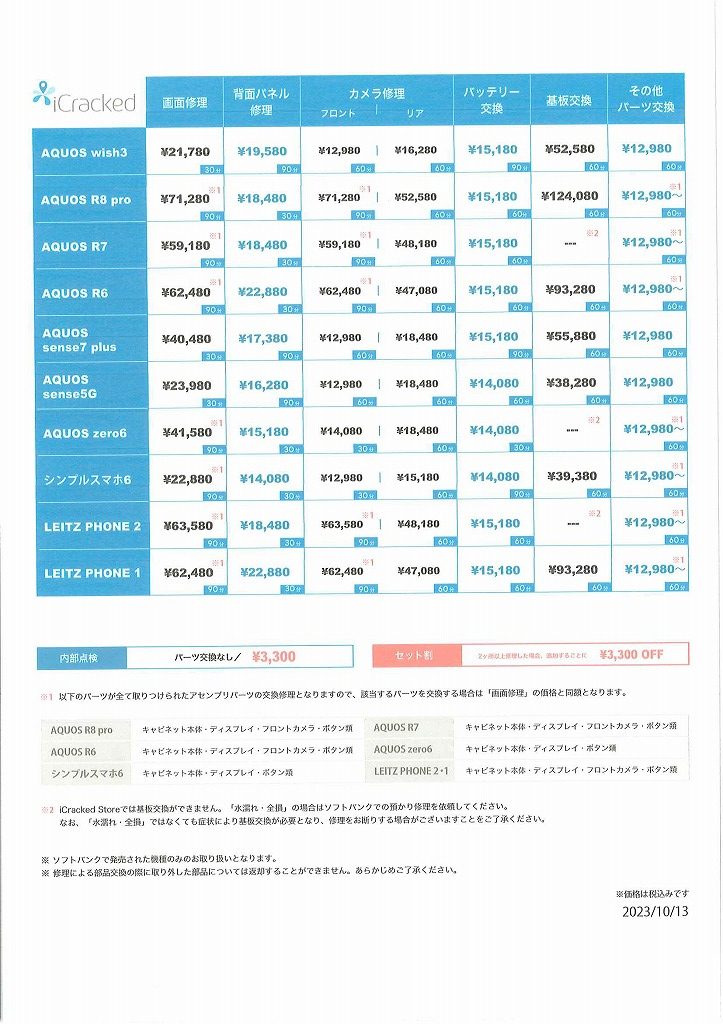 iPhone 修理価格表