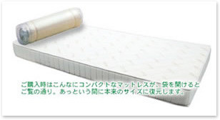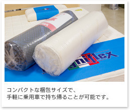 真空パッケージ技術が、かさばるマットレスを信じられないほどコンパクトなサイズに変身させました。 |