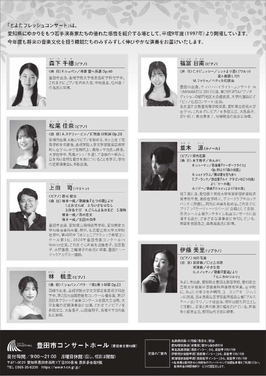 今年も愛知県にゆかりのある若手演奏家が華麗に登場します。