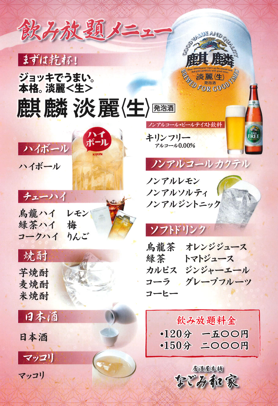 | 宴会料理 | 飲み放題 | 料理 | 飲み物 |