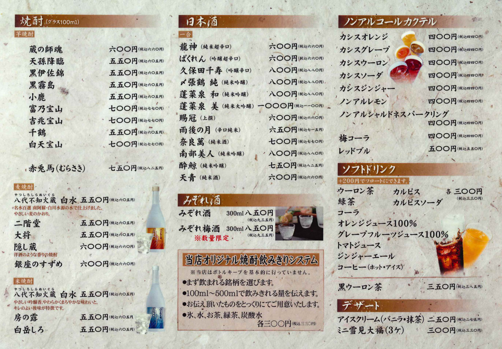 ※ほかにも数量限定の日本酒・焼酎ございます。