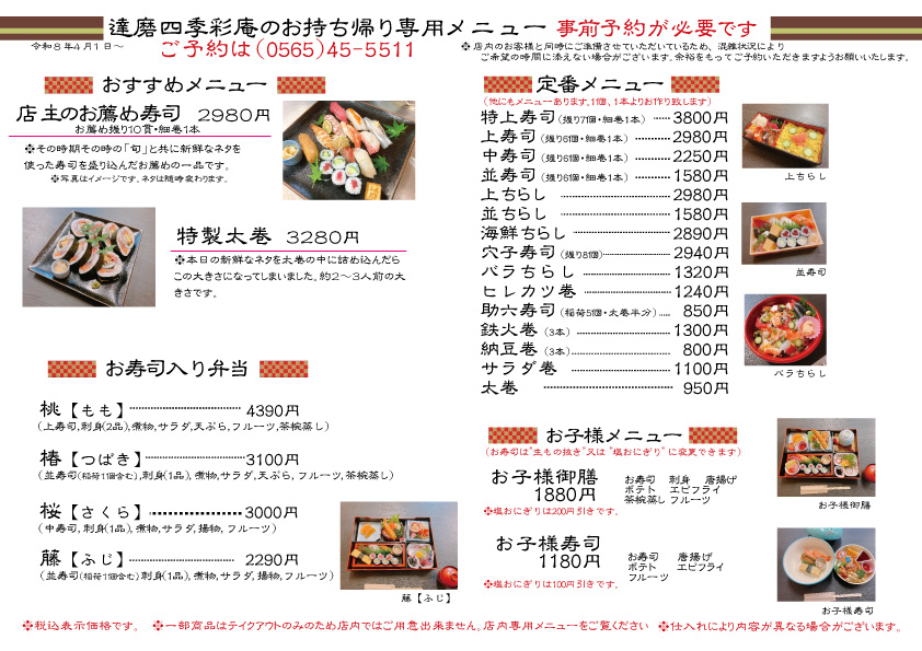 達磨 四季彩庵 (旧だるま寿し さなげ店)