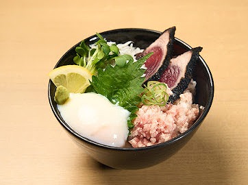 中でも注目は、かつおのたたき二枚、しらす、ネギトロが彩りよく盛られた三色海鮮丼は、温玉付きでまろやかさもプラス。それぞれの魚の個性が引き立ち、混ぜても、別々で食べても美味しいランチタイムにぴったりの満足感ある一品です。
