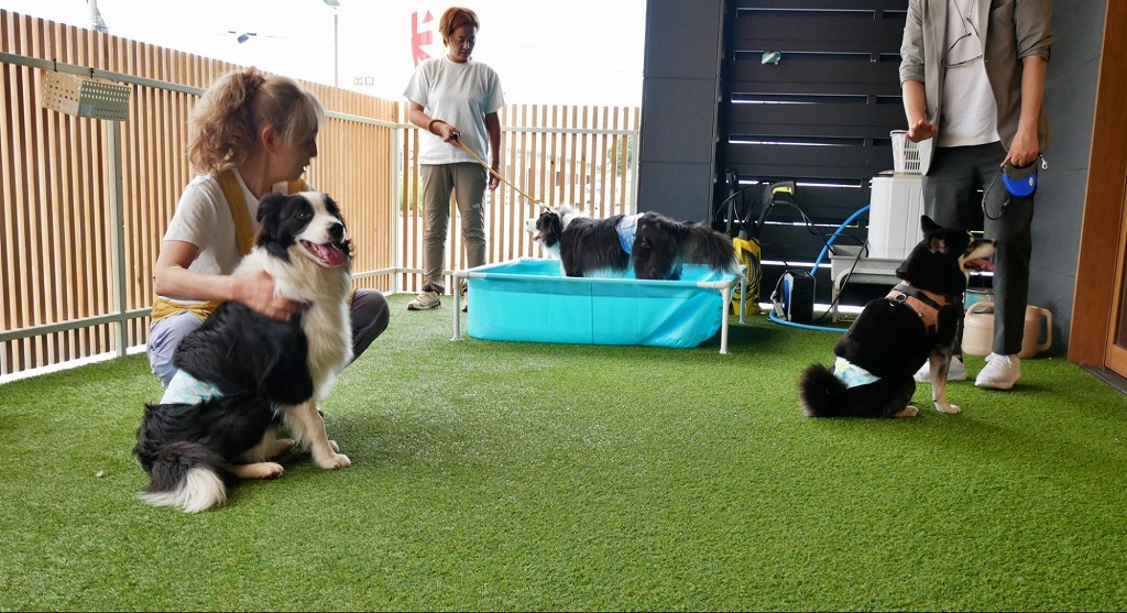夏場にはプールが設置され、水遊びが大好きなワンちゃんにもおすすめ。ワンちゃん同士だけでなく、飼い主の交流の場にもなっています。