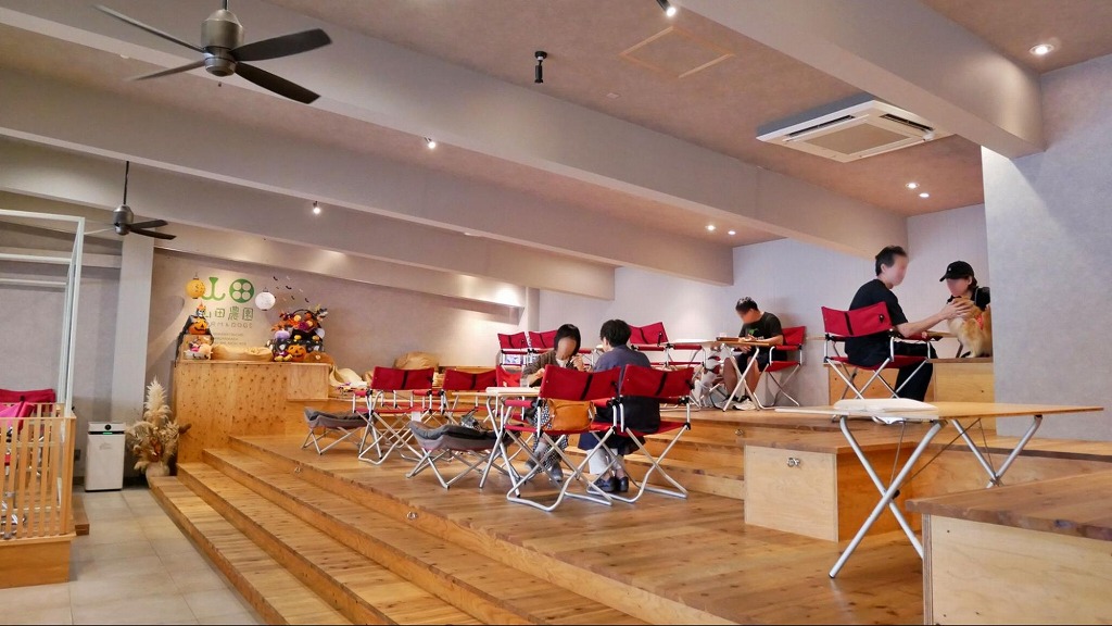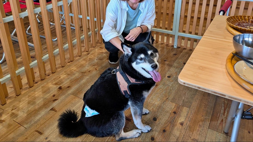 ゆったりとしたテーブルとイス、ワンちゃんが自由に動き回るのに十分なスペースがあり、何時間もいたくなる居心地の良さでした。
