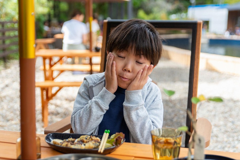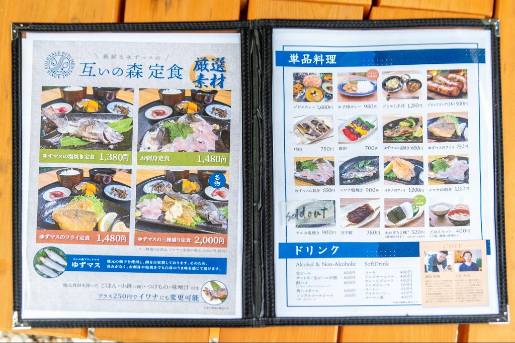 さらに、ご飯・味噌汁・漬物のついたごはんセット400円(税込)やおにぎり2種にお味噌汁がついたセット520円(税込)などを追加して、森のレストランならではの贅沢な定食スタイルに。自分で釣った魚を、その場で味わう贅沢な「互いの森PARK」ならではの、五感で楽しむ食体験です。
