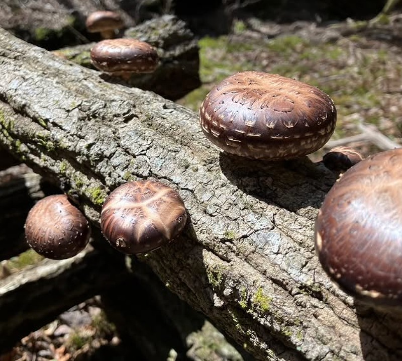 原木椎茸を採ることができる「Mushroom Forest(マッシュルームフォレスト)きのこの森」。原木椎茸とは、クヌギやナラなどの広葉樹の原木に椎茸菌を植え付け、自然に近い環境で栽培された椎茸のことで、市販の椎茸とは比べ物にならないほど大きさと肉厚さが特徴。そんな椎茸を自分の手で収穫、取り放題。掴み取ったばかりのきのこと新鮮なマスと一緒に味わうことも可能です。