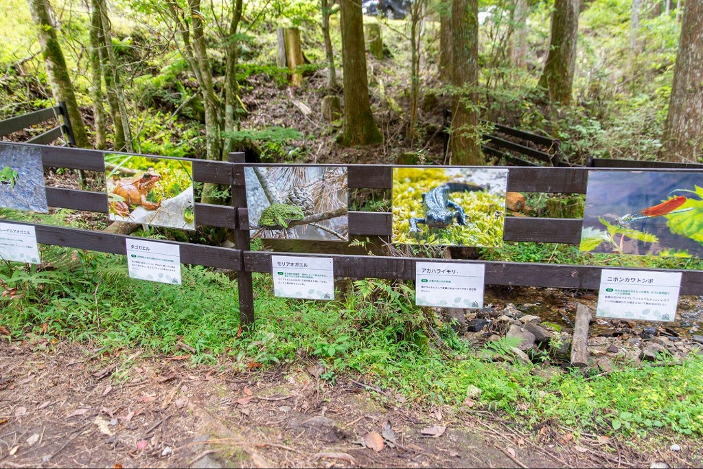 野鳥のさえずりや木々のざわめきに耳を傾けながら、森の中での散策。周辺マップを片手に、季節の草花や野鳥や、小川沿いで水辺の生き物を探したり、木漏れ日が心地よい小道を歩いたり、森の息吹を感じるひとときが広がります。段差の少ないルートもあるので、小さなお子さん連れでも安心です。