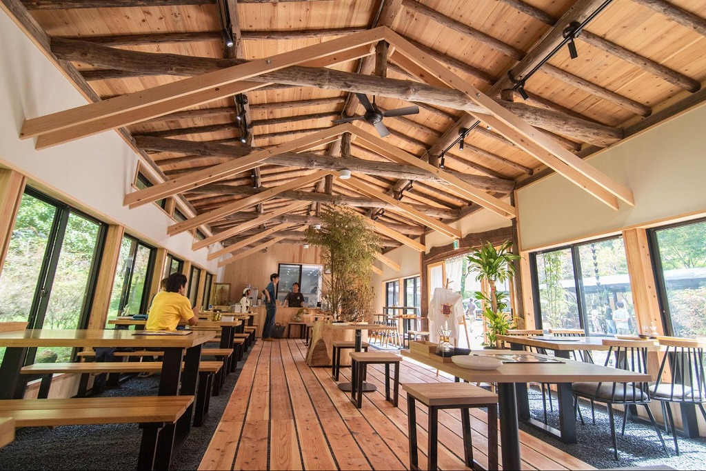 にぎやかな水のエリアとは対照的に、小道を進んだ先にある静けさと落ち着きに包まれた森のエリアには、自然と食をじっくり楽しめる「ZOI in the Forest(ゾイ インザ フォレスト)互いの森PARK店」と「Mushroom Forest(マッシュルームフォレスト)きのこの森」の2つのスポットがあります。