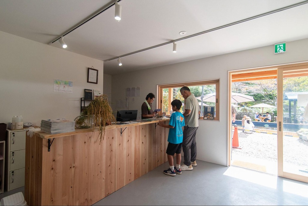 グランピング、キャンプ、釣り堀などのご利用の際は、まずは管理棟で受付を。