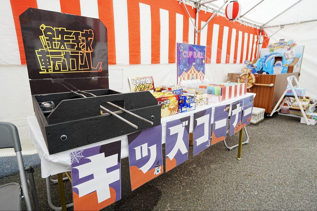 お子様向けのキッズコーナーも充実。縁日券を使って遊べるゲームコーナーや、家族で思い出写真を撮れるフォトブースも設置されており、お子様連れのご家族に大人気でした。