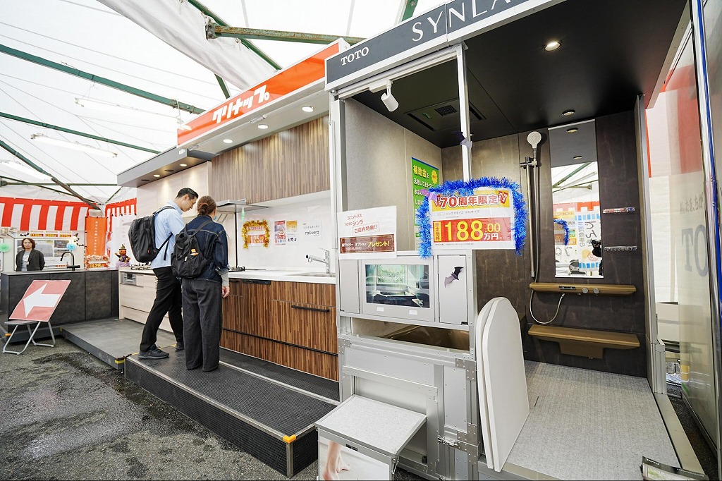 店外の会場には、リフォーム相談専用ブースが設けられています。キッチンや浴室といった水回りの最新設備を実際に見ながら、お家のリフォームについて相談できるのが魅力です。