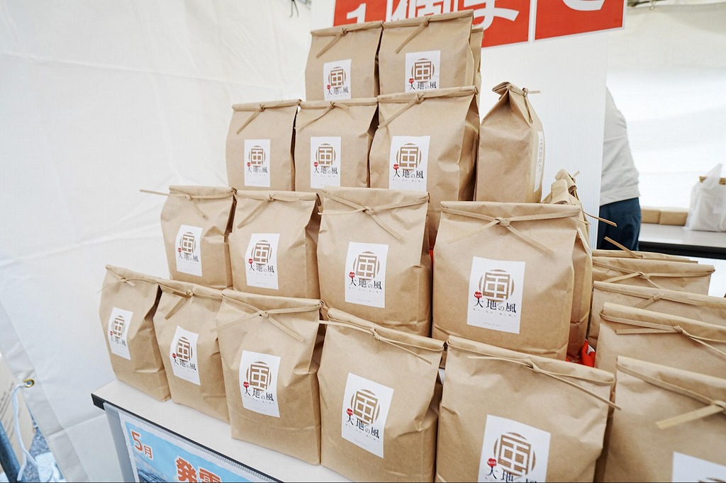 ご家族連れに人気だったのが、「お米・野菜の販売コーナー」。三河商事が自社で生産した採れたての新米が、3kg 2,000円という特別価格(1家族1袋限定)で販売されました。