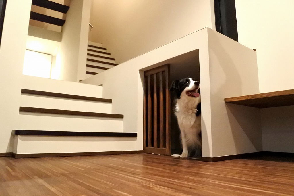 庭やウッドデッキに続くテラスを設計すれば、外遊びや日向ぼっこができる癒しの時間にもなるでしょう。床は滑りにくい素材を選び、階段や段差には安全対策を施すことも大切です。また、来客時などに落ち着ける“犬専用スペース”を用意しておくと、安心して暮らせる住まいになります。
