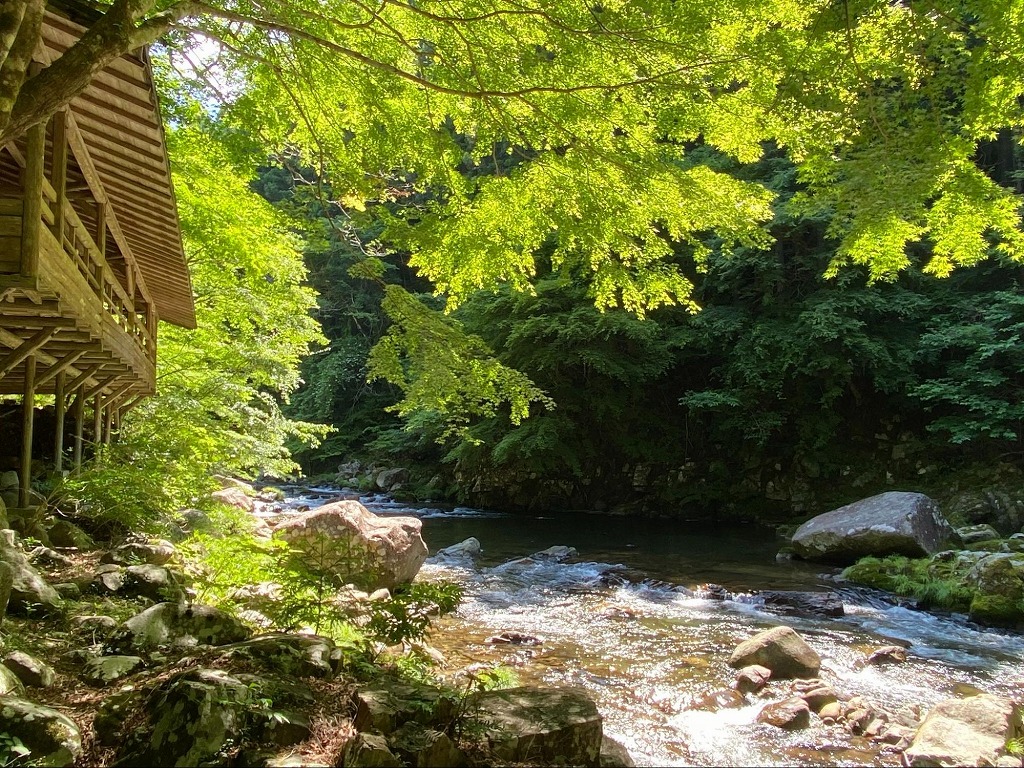 豊田市足助町、香嵐渓の奥に佇む「一の谷」は、昭和40年創業の老舗和食店。巴川のせせらぎと山々の自然を眺めながら、四季折々の風景とともに食事が楽しめる香嵐渓の奥座敷として親しまれています。