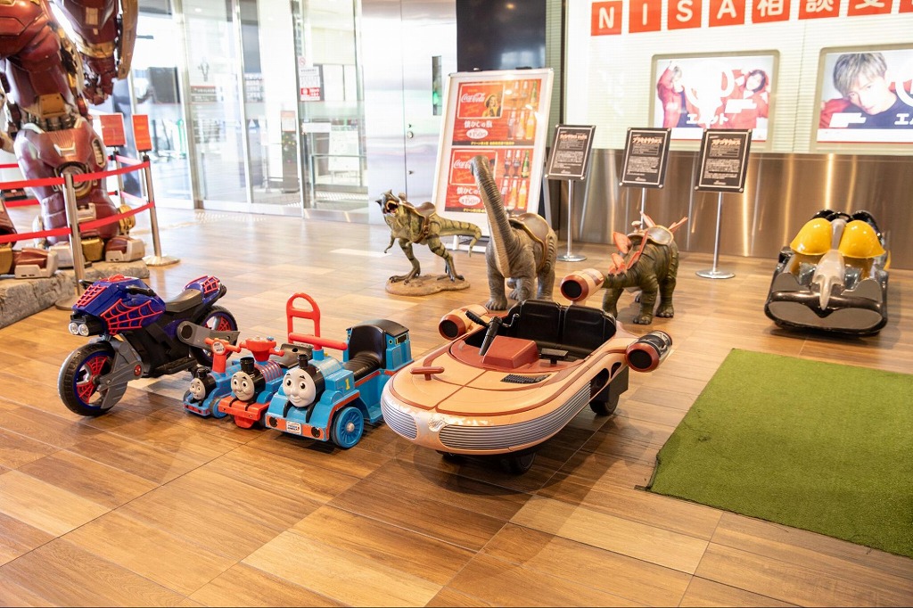 子どもが乗って遊べるおもちゃの展示もあり、大人も子どもも楽しめるスポットになっています。