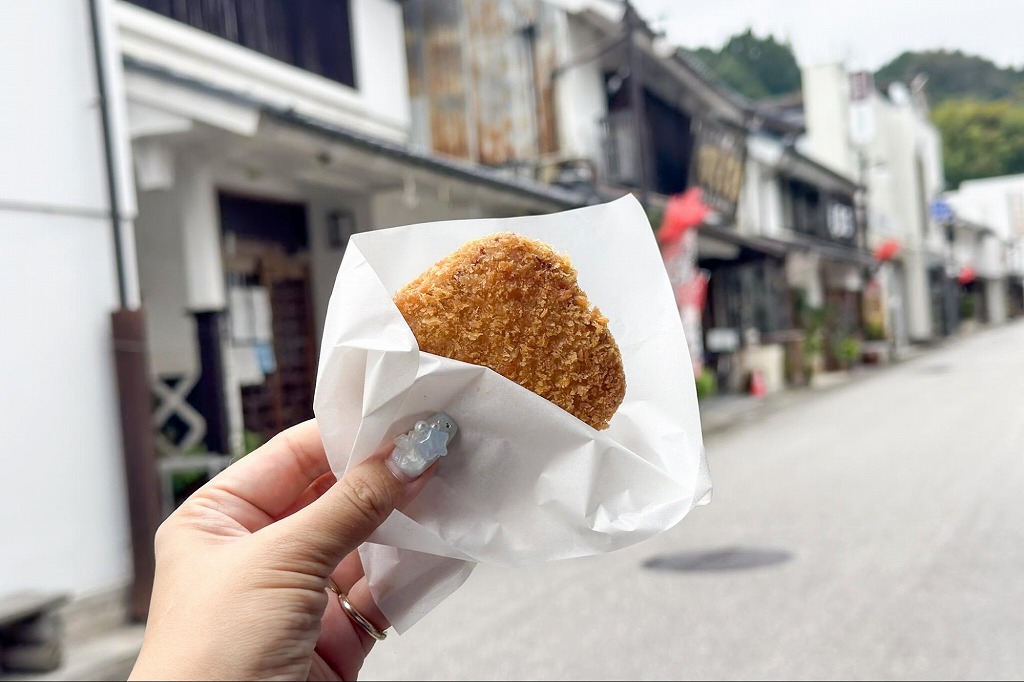 山間部である足助ならではの味覚といえば、やはりジビエ。こちらでは、猪肉を使った「ししコロッケ」と、鹿肉を使った「もみじコロッケ」が大人気。食べ歩きにぴったりのサイズ感です。