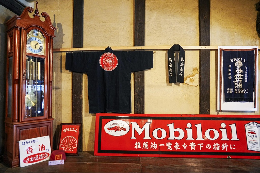 大正時代、車社会の到来と共に、田口家はいち早くガソリンの販売を始めました。敷地内には当時の給油用地下タンクや、昭和レトロな看板が残されており、ここがかつて町のエネルギー供給拠点だったことを物語っています。