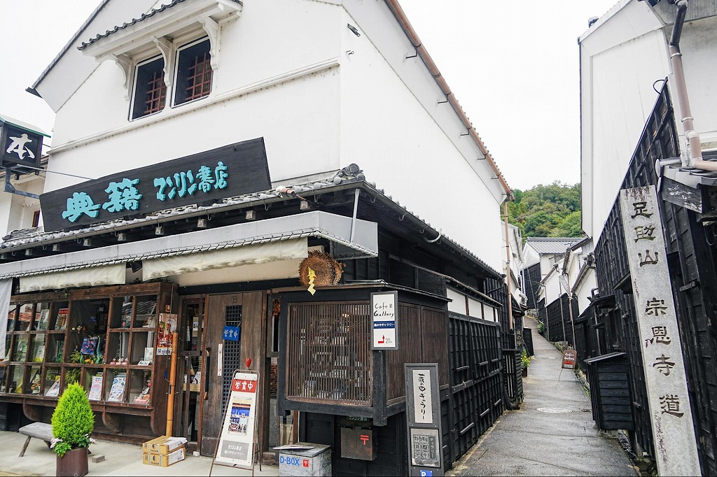 マンリン書店という本屋さんの横にあるこの細い路地は、蔵の黒い板壁と石垣が迫るように続き、その奥へと吸い込まれそうな不思議な奥行きを感じさせます。