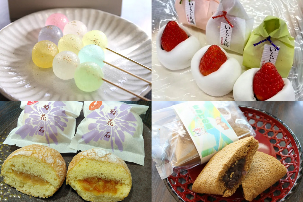 銘菓の一つ「琥珀玉」は、宝石のような美しさが好評で、手土産やギフトにも喜ばれる一品。大福や花カステラ、いちご大福などの定番から、桜餅や花見団子、いがまんじゅうなどの季節菓子まで豊富なラインナップが魅力です。